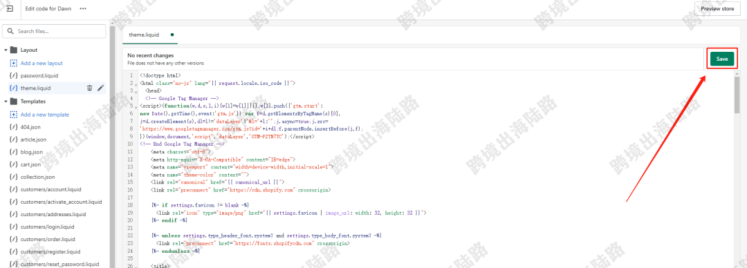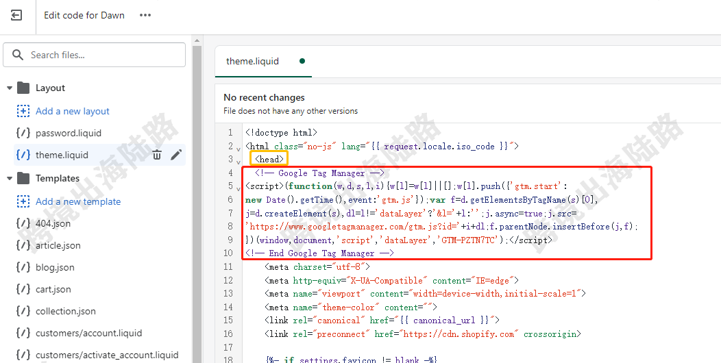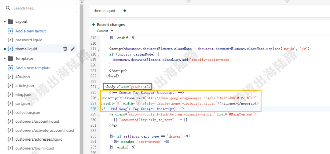 因为普通版本的chekout.liquid文件访问权限是限制的,是非开源的,所以安装Google Tag Manager(GTM)分Shopify Plus版本和非Shopify Plus版本。Shopify Plus安装Google Tag Manager(GTM)请参考下方链接教程。因为大部分商家使用的是非Shopify Plus的普通版本,所以接下来的教程会针对非Shopify Plus的普通版本逐步讲解。
