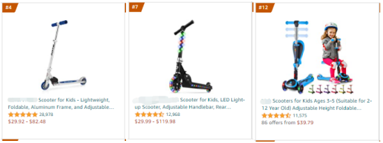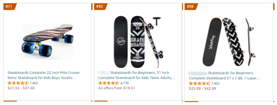 滑板惊险刺激,不敢尝试的消费者会选择安全易学好操控的滑板车。多款产品在热销榜排名靠前,且留评过万。