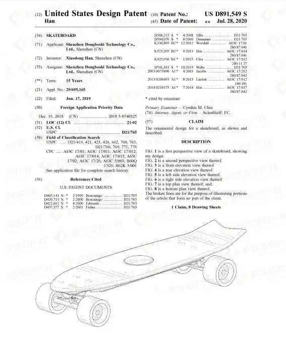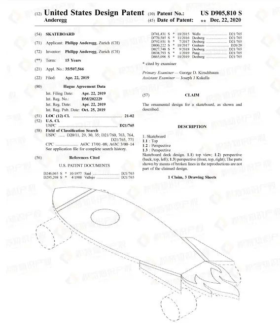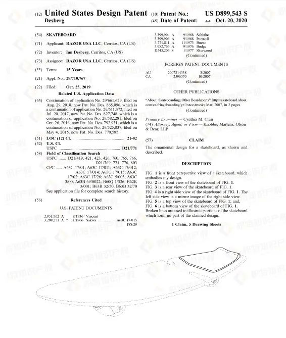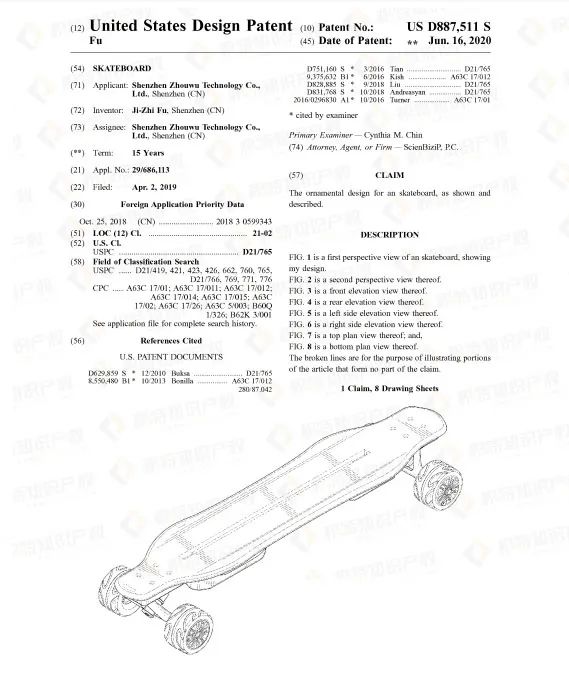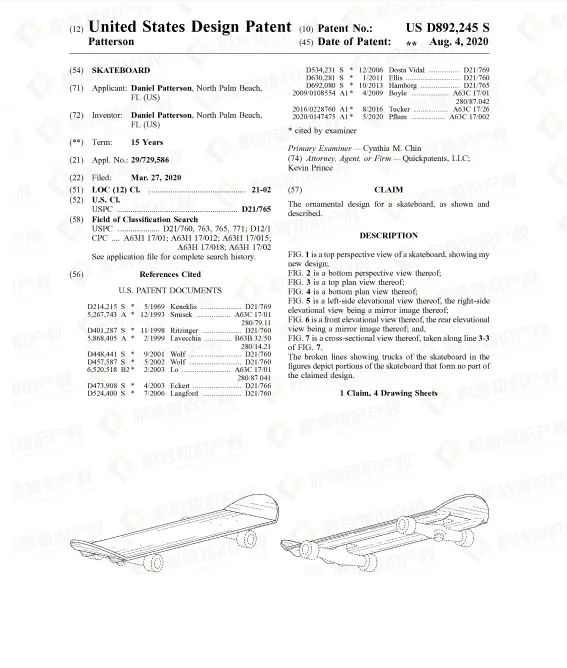 滑板的外观专利有很多,卖家一定要注意规避,以免侵权: