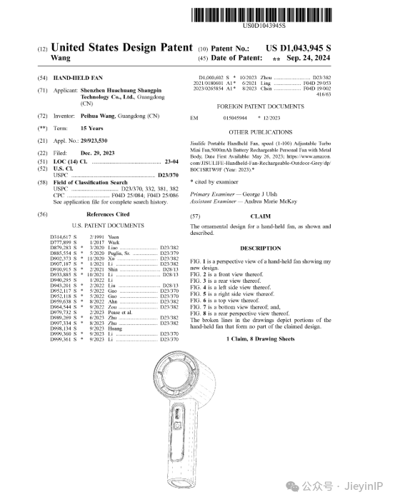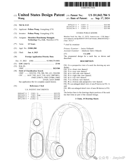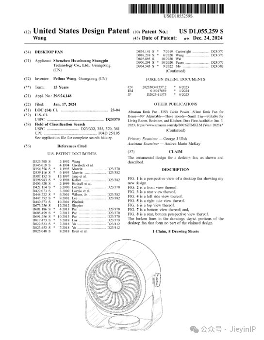 除了本案维权专利外,小编还检索到原告名下在2024年还注册了6个与小型风扇相关的美国外观专利,这意味着市场上许多类似产品可能面临侵权风险。