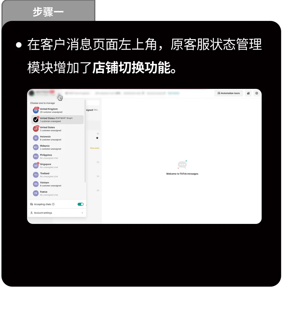 • 多店铺消息聚合:商家完成多店绑定后,商家客服可以在同一消息界面一键切换店铺,无需切换后台,集中处理各个店铺的买家消息。