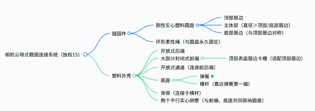 Peak Design 的专利布局呈现 “基础框架→细化形态→完整场景” 的递进逻辑,先用独权 1 锁定核心发明点,再通过后续权利要求封堵规避漏洞,这种策略值得跨境品牌借鉴: