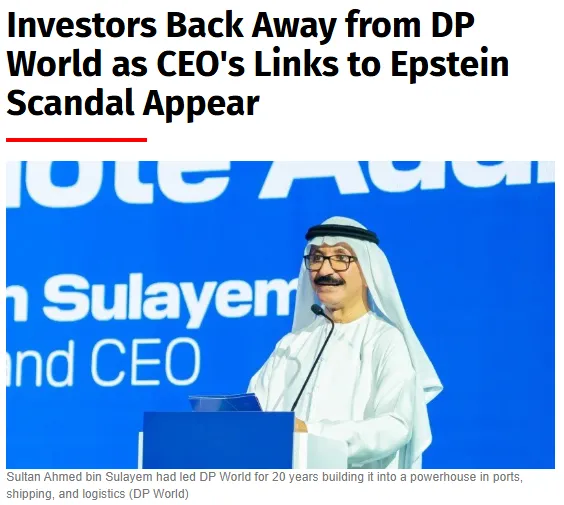 近期,全球航运和港口物流领域迎来罕见的舆论与市场震荡——全球重要港航企业之一DP World(迪拜世界港口公司)董事长兼CEO Sultan Ahmed bin Sulayem(苏丹·艾哈迈德·本·苏莱姆)因其与已故性罪犯杰弗里·爱泼斯坦(Jeffrey Epstein)间的长期私人联系被曝光,引发连锁反应:在短短24小时内,两大国际机构宣布暂停与DP World的投资合作,给这一全球航运与港口巨头的公信力和合作关系带来明显冲击。