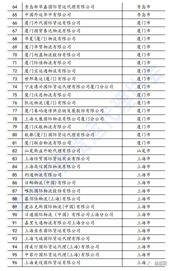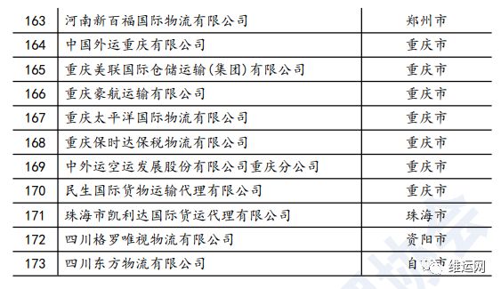 下面看一看都有那些货代企业入选?看看你们公司上榜了吗?