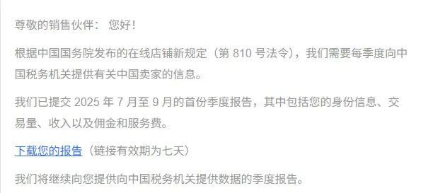 标题看着挺官方,叫什么“第810号法令”,但内容让不少人心里咯噔一下。简单说,就是亚马逊通知你:根据中国法律要求,你的身份信息、交易流水、银行账户这些核心家底,平台已经打包发给中国税务机关了。