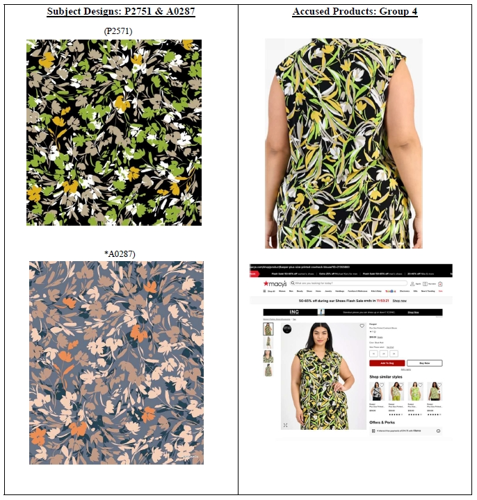 原告Zelouf 集团是一家总部位于纽约、拥有 40 余年历史的家族式纺织品企业,专注于原创印花面料的批发与分销。旗下 Zelouf Fabrics 品牌自有设计团队,每季推出 200+ 款新花型,客户包括 Macy’s、Nordstrom、Target 等零售巨头及独立设计师。除面料外,集团还为服装、家纺、配饰提供定制印花服务,并拥有自己的数码印花工厂,可快速完成小批量到大批量生产。