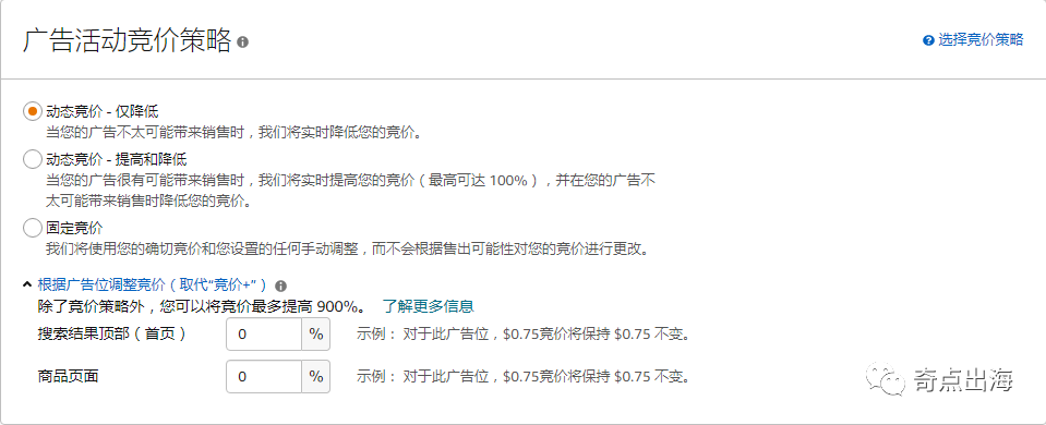 当我们的广告有可能出现在非顶部商品页面时,可设置竞价最高提高900%去抢占该位置