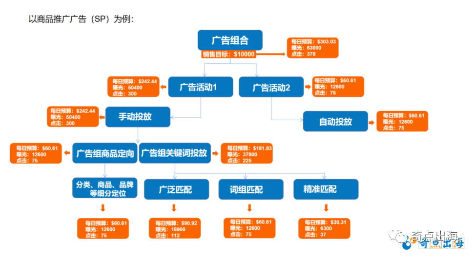 在上面讲到每日预算的时候,我们有提到逆推法。我们将广告结构层级的概念与逆推法结合,便可反推出合理的预算以及达成广告目标所需的点击与曝光。