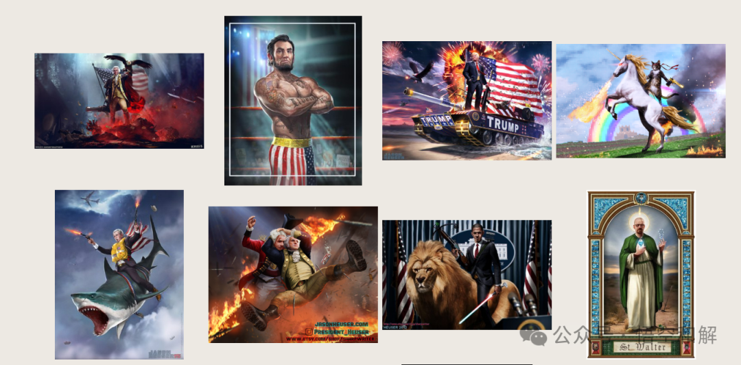 原告Jason Heuser是一名来自加州的专业艺术家。Jason Heuser的作品主要以美国总统为主题,通过幽默和有趣的方式重新演绎历代总统,同时融入了当时的历史元素。他的作品虽然不如某些作品那样宏大和立意深远,但每一幅都充满了细节,让人感到非常真实和到位。