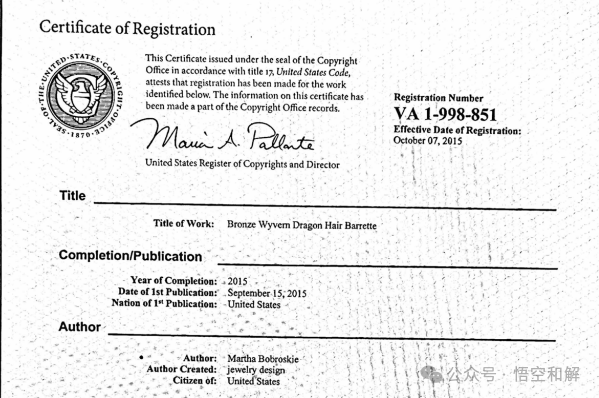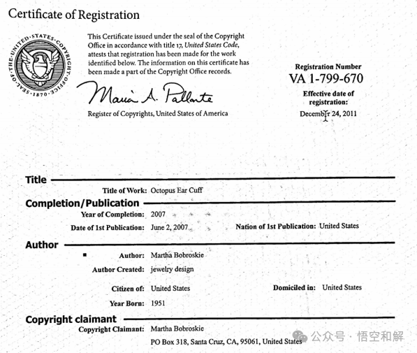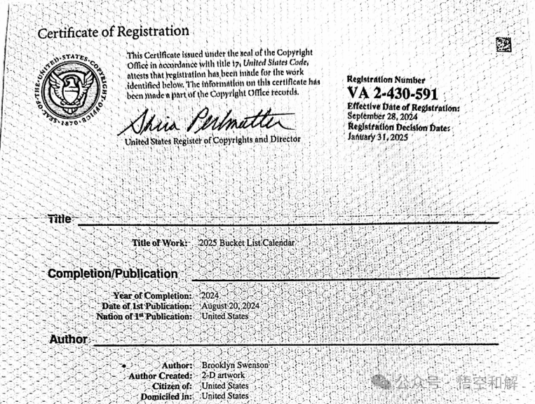 以下图片是原告的注册版权图,版权号为: VA 2-430-591具体的图片是在他们官网找的,大家注意避雷,直接用是有侵权风险的!!!