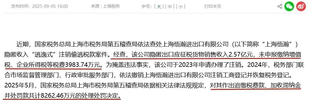 上海有家跨境出口公司,揣着 “注销公司 = 税务一笔勾销” 的侥幸,悄咪咪把2.57亿出口收入藏着不报,零申报多年后干脆注销主体跑路。