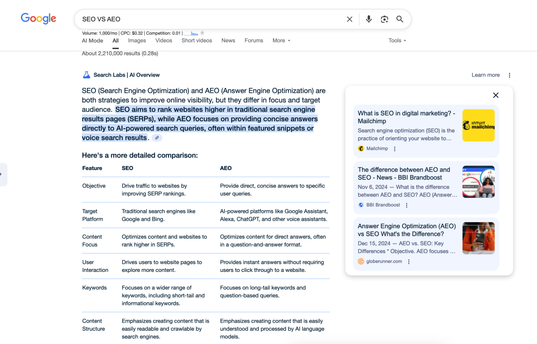对于绝大多数SEO从业者来说,这意味着谷歌SEO正式进入了AEO阶段。