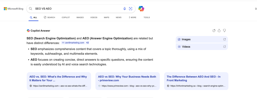 但是AEO不再依靠传统的站点排名链接,通过AEO的名字我们就能知道,Answer Engine Optimizition答案引擎优化,顾名思义就是AI引擎自动把握搜索意图,直接给出答案。