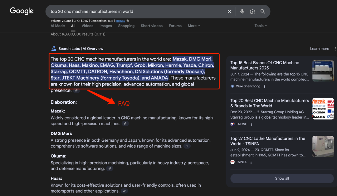 AEO结果内容更多的是featured sinppets,FAQ section。