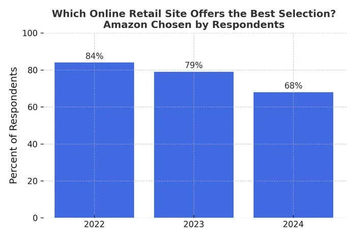 长期以来,亚马逊通过无限扩展商品种类建立了 “万物商店” 的优势,但过度扩张导致大量重复、无库存或长期未更新的 “僵尸链接” 充斥平台。数据显示,认为亚马逊 “商品选择最好”的消费者比例,从2022年的84%跌到2024年的68%,创下12年来的最低。