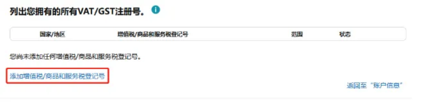 1.路径:卖家平台>【设置】>【税务设置】>【添加增值税/商品和服务税登记号】