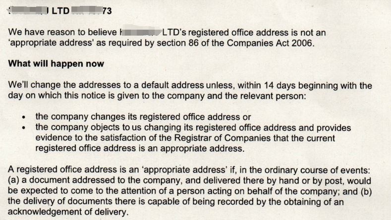 更让人头疼的是,Companies House还会群发验证信,上面直接写:“我们有合理理由怀疑你的公司地址不是一个“合适的地址”(We have reason to believe XXX LTD's registered office address is not an ‘appropriate address’)。