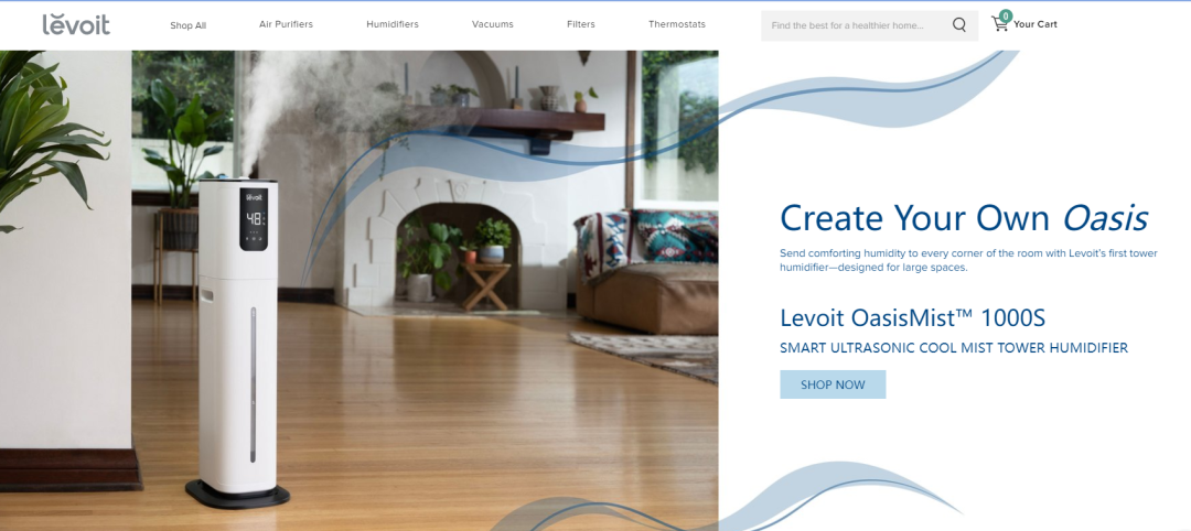 Levoit主要销售家居生活类小家电,包括空气净化器、加湿器、真空吸尘器等。