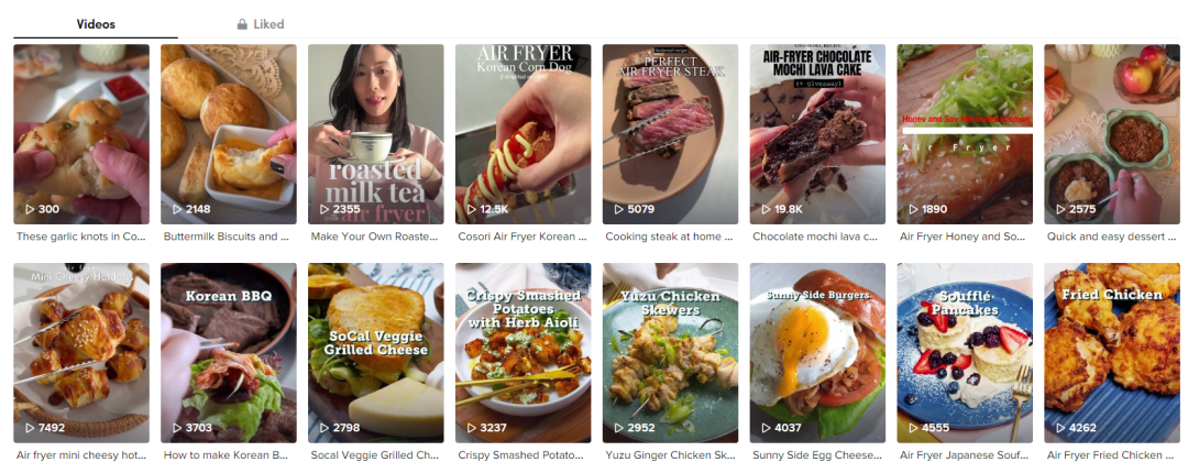在TikTok上,Cosori制作了各种制作美食的短视频,展示了他们的空气炸锅在实际使用中的干货和便利性,并通过评论区折扣引导进行转化,从而提升了品牌的曝光度。