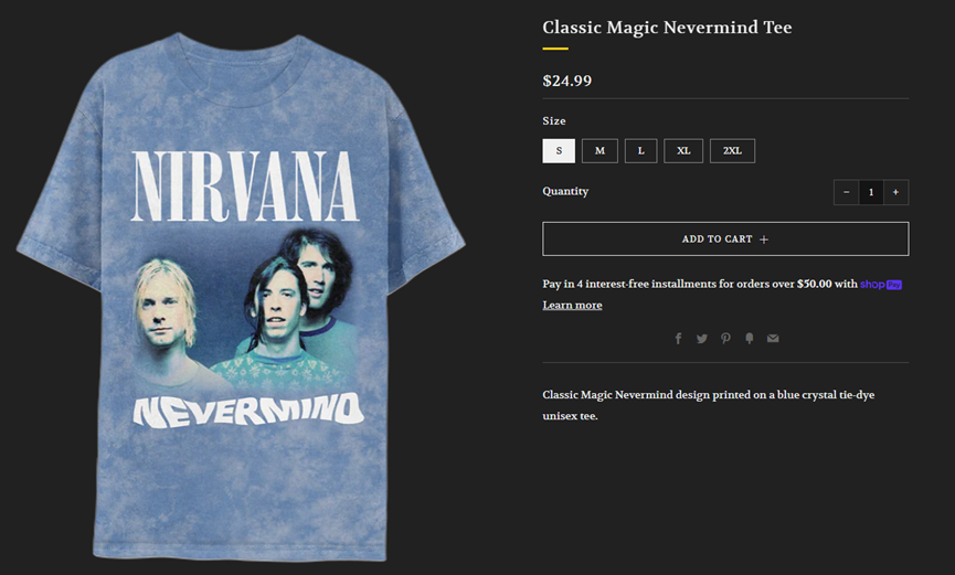 Nirvana涅槃乐队是1987年在华盛顿州阿伯丁成立的美国摇滚乐队,由主唱兼吉他手Kurt Cobain和贝斯手Krist Novoselic创立。Nirvana是有史以来最畅销的乐队之一,在全球售出超过75万张唱片。案件涉及到的注册商标,商标注册大类有第9大类科学仪器、第16大类办公用品、第25大类服装鞋帽和第41大类教育娱乐,Nirvana品牌主要出售的产品有服装、配饰、酒具、海报等。