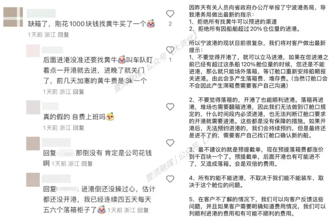 此外值得注意的是,在近期,宁波港还流传出了“找黄牛高价进港”事件。