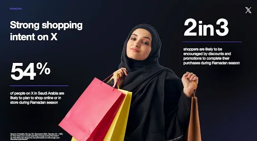 斋月既是信仰与家庭团聚的重要时刻,也是品牌营销的黄金档期。这个时期,消费者的社交互动、内容消费和购物行为都会迎来高峰,如何在这个关键节点精准触达目标用户,成为品牌增长的关键。X,作为 MENA 地区最具文化影响力的平台,正是品牌在斋月期间不可错过的营销阵地。2024年斋月期间,X 在沙特的相关内容曝光量高达 115 亿次,同比增长 30%,品牌影响力持续攀升。为什么斋月期间要选择 X 进行广告投放?答案就在这里。