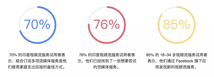 视频平台的扩增,再加上丰富多样的内容以及内容消费向移动端迈进,这些都从根本上改变了人们寻找和体验流媒体服务与内容的方式。为了帮助营销者了解和迎合消费者不断变化的观看习惯,Facebook IQ 委托 Accenture 对 1,005 名年满 18 岁,且在过去 6 个月内试用过流媒体服务的印度消费者开展了一次调研。利用本次调研得出的数据,再结合一些新兴的文化转变以及流媒体权威专家 Dan Rayburn 的分析见解,我们揭示了影响当今流媒体服务行业的三大趋势:消费者使用不止一项服务,移动设备贯穿消费过程,以及社群发挥着重要作用。