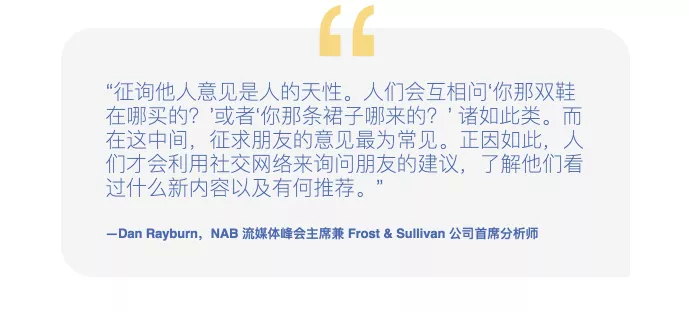 在当前这个选择过剩的新时代,定制的服务和内容往往更具竞争优势。在帮助观众寻找各类内容的所有渠道中,社交媒体扮演着愈加重要的角色。数据显示,在通过社交媒体发现新流媒体服务的受访试用者中,有超过三分之二*的人表示这些平台上展示的广告起到了帮助作用。