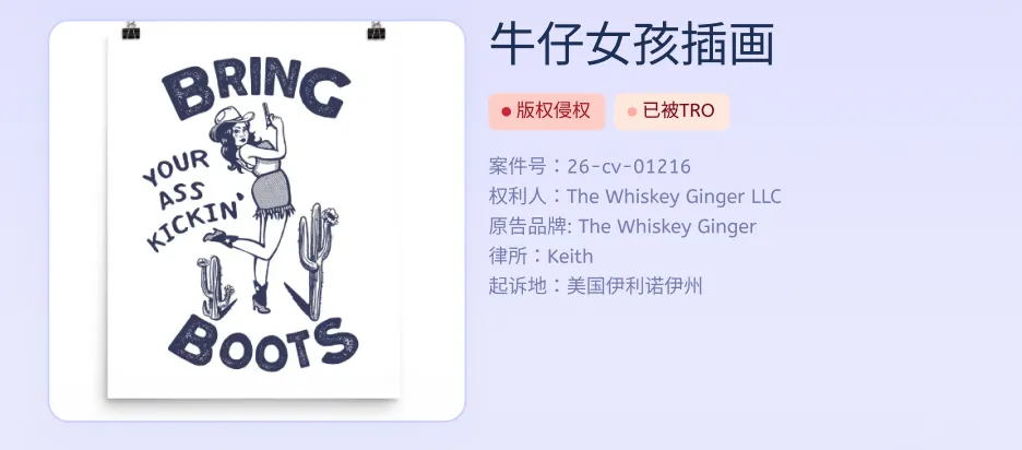 TRO资讯速递|西部女郎复古插画发起维权!112家华人店铺被告,赔偿金额超百万,速查!