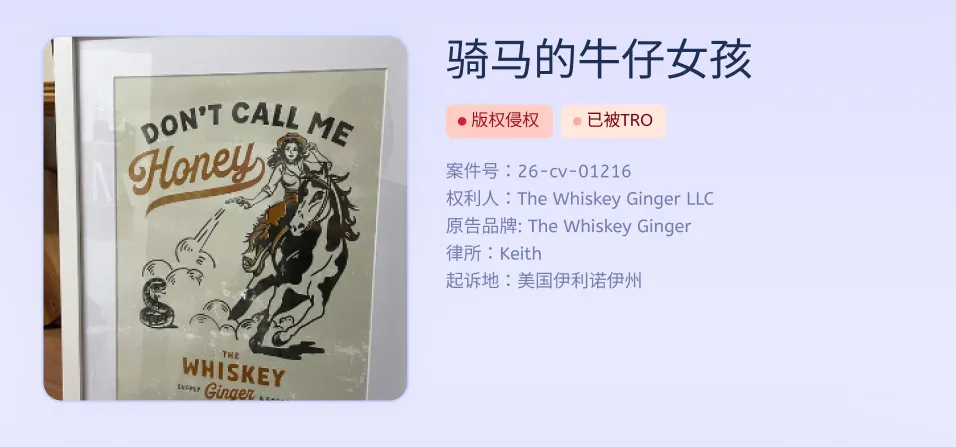 原告 The Whiskey Ginger, LLC 手握复古西部女郎插画版权委托Keith律所发起维权,指控亚马逊、沃尔玛、Temu卖家未经授权销售相关商品!这已经是该系列作品在1月内发起的第2次维权了!