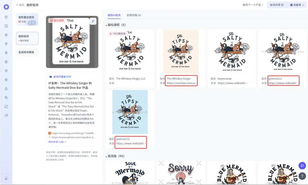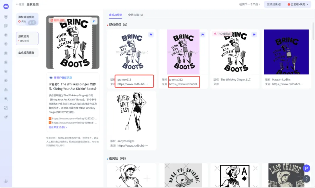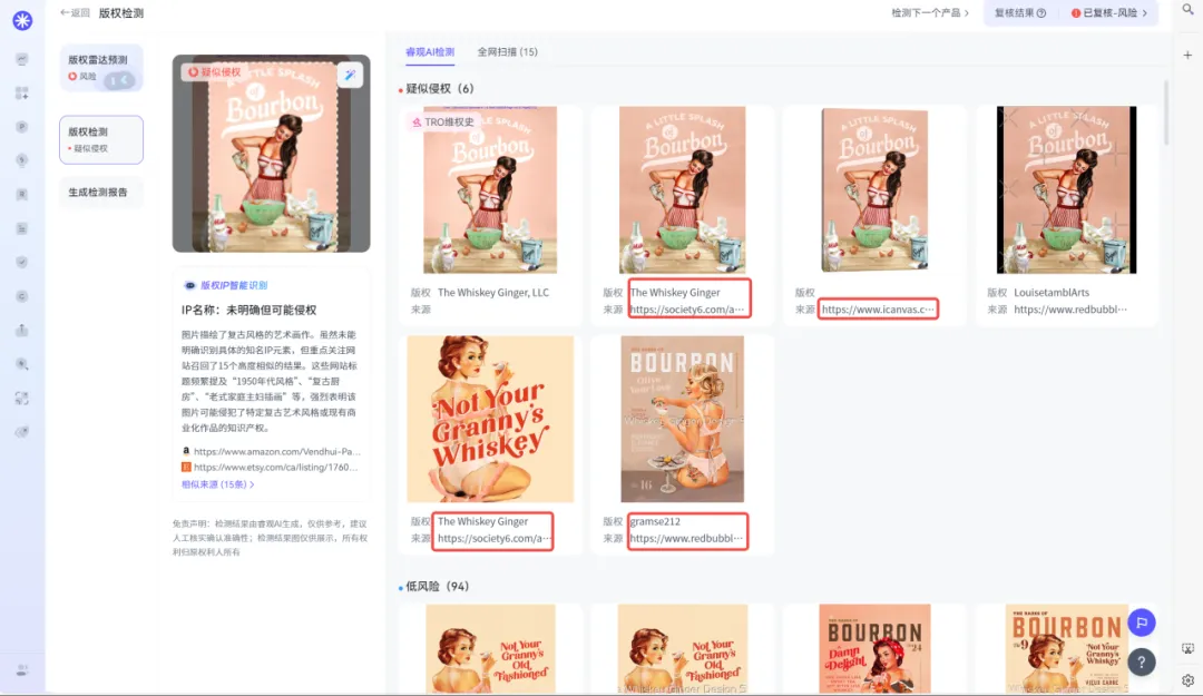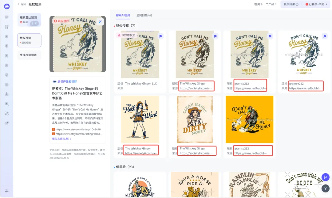 其他“高危作品”同样以The Whiskey Ginger / Gramse212 这两个艺名出没在各大交易网站,检测详情见下图!