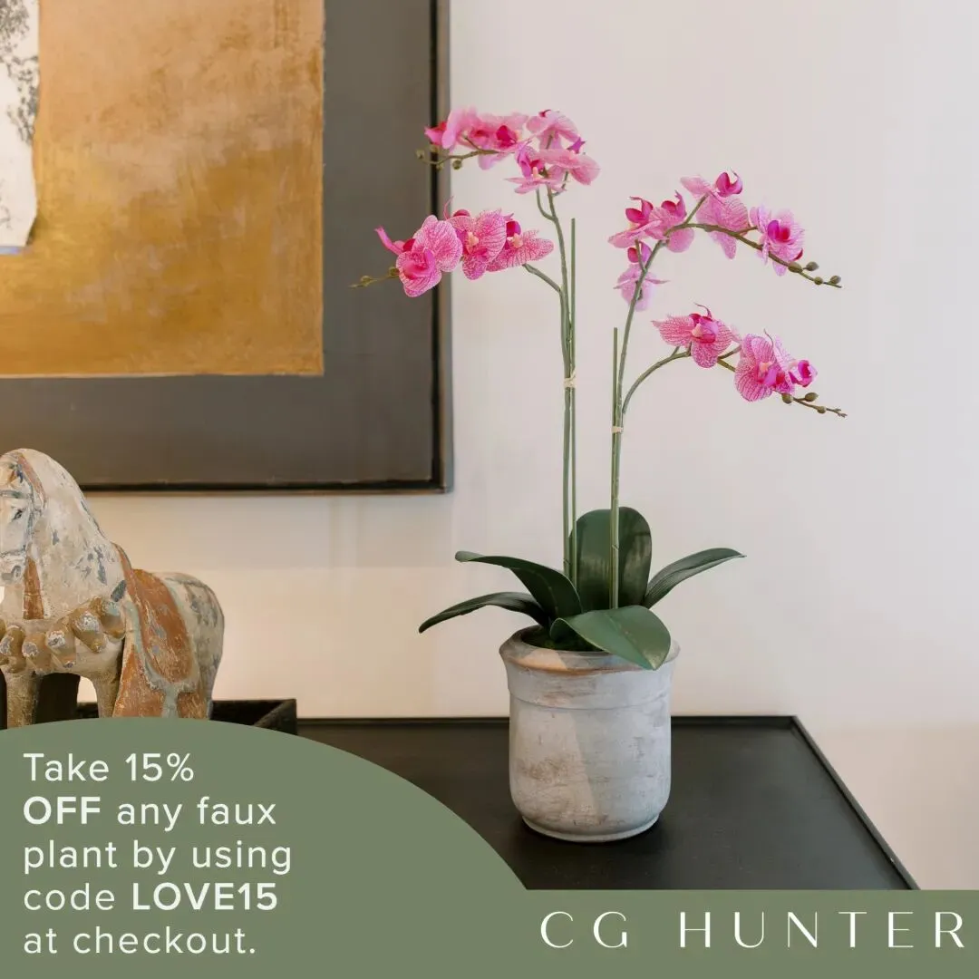 观察CG Hunter的Facebook主页可以看到,过去一年展示估值最高的广告是用于折扣促销的一则图片;图中产品是粉色蝴蝶兰盆栽,粉色的花朵在富有层次感的背景的衬托下显得十分高级有质感。这则素材从2025年10月初一直投放到2026年1月初,展示估值54万+。