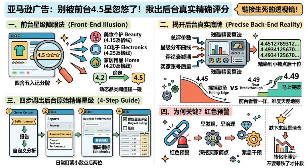 抛开前台那套视觉滤镜,亚马逊算法底层跑出的原始星级,是一个极其残酷且精准的绝对值。
