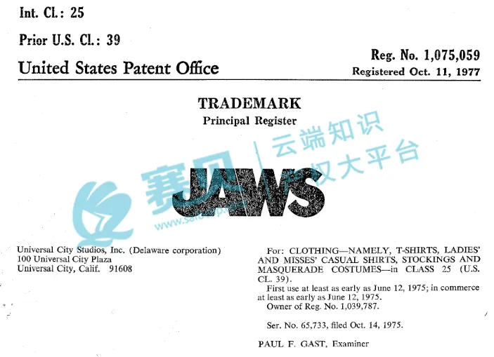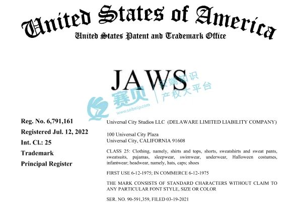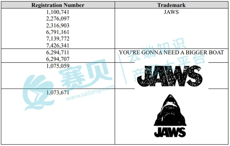 从赛贝TRO案件查询系统获悉,2026年4月2日,环球影业Universal City Studios LLC委托GBC律所发起商标侵权 TRO 诉讼,(Lanham Act)对使用JAWS(大白鲨) 注册商标的玩具、海报、服饰、文创周边等产品全面维权。涉案 JAWS 商标覆盖第 9 类音像、第 16 类纸制品、第 28 类玩具三大核心类目,GBC 已完成批量取证并将会申请临时禁令,涉嫌侵权的被告卖家需提前准备好应对方案。