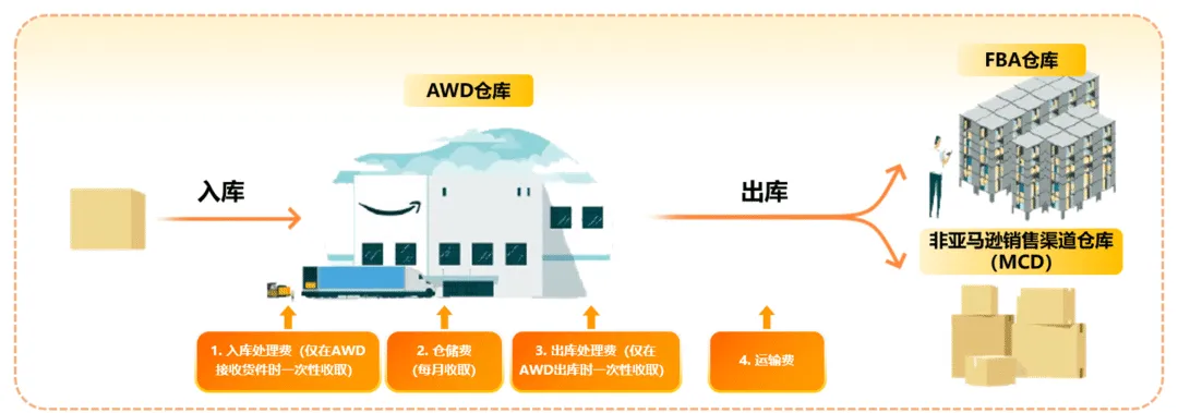 AWD旺季不涨价,仓储费可低至每月0.38美元/立方英尺,且没有库容限制,入库商品即可售,能有效避免断货。使用亚马逊SEND或AGL发货至AWD,还可享仓储费8折优惠。