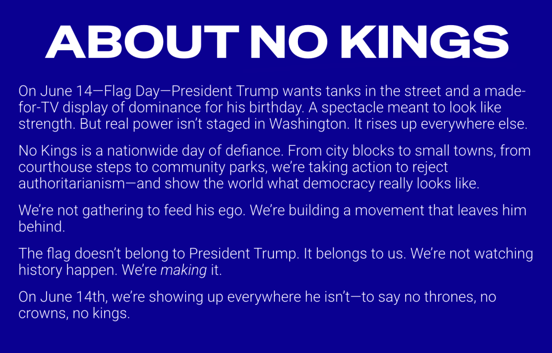 然而,一场名为"No Kings"的活动将在本周六举行。