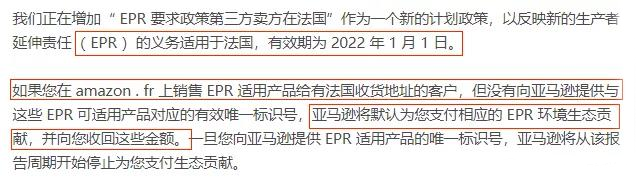 (2)向德国/法国进口需要符合EPR要求的商品;