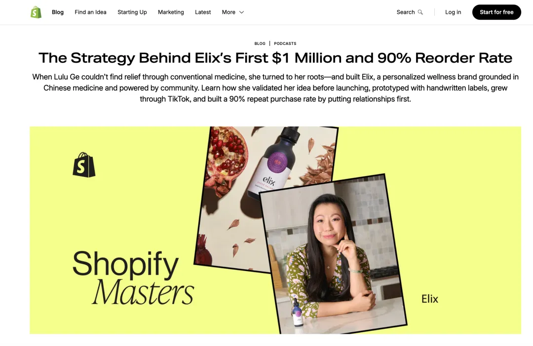 但是对于以上说到的中国特色的产品,其实要更难,但是这个行业有没有成功案例呢,当然有,我之前写过的Elixhealing,一个华裔女性创立的,将传统中医(TCM)与现代数据科学相结合的美国新锐女性健康品牌,就是一个活生生的例子,尤其是最近被shopify官方采访了,当成了标杆案例。