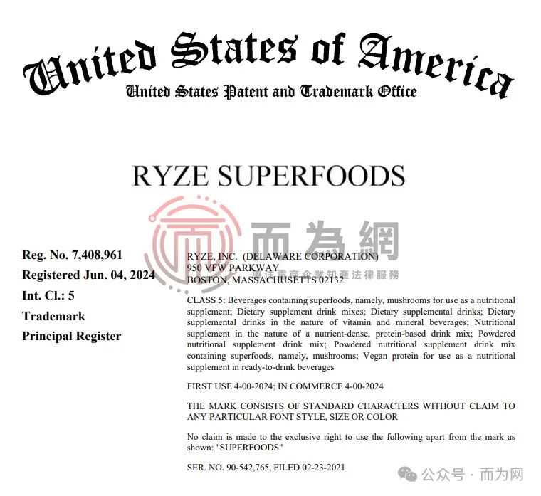 原告RYZE, INC是一家来自波士顿的食品公司,RYZE SUPERFOODS 咖啡是一款独具特色的高品质膳食补充剂饮料混合物,由哈佛大学毕业的创始人 Andrée 和 Rashad 精心打造。两位创始人曾因压力大、生活习惯不佳,依赖大量咖啡来维持状态。随着年龄增长,他们决定做出改变。在探索中,发现了药用蘑菇的神奇力量,并将其融入咖啡,经过无数次试验,创造出了这款独特的咖啡。
