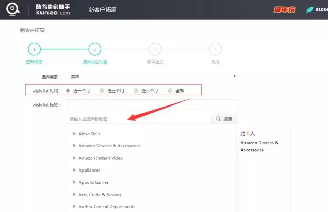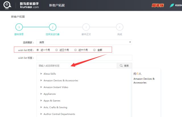 选择、并填写完后进入下一步,选择想要营销的wishlist买家品类