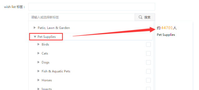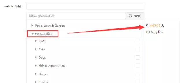 在我们选择宠物用品(pet supplies)约有4.4万人次加入wishlist;