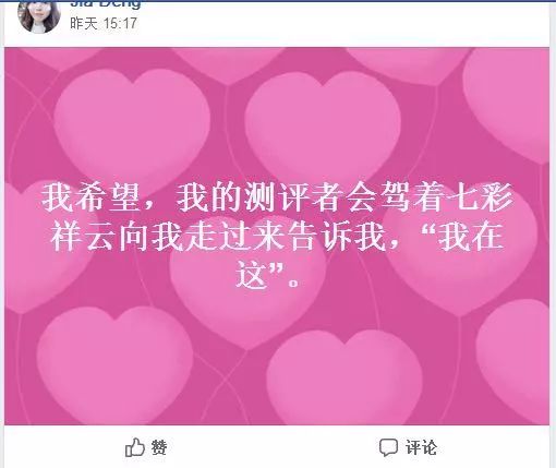 我希望我的测评者会驾着七彩祥云向我走过来告诉我“我在这”。