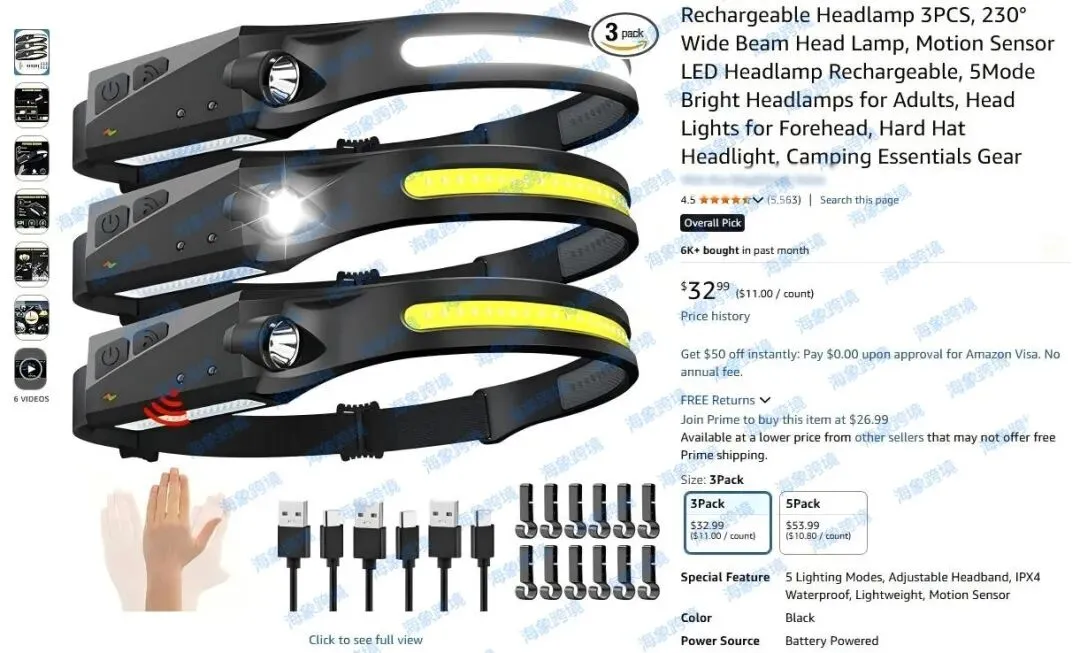 原告品牌:免提头灯专利