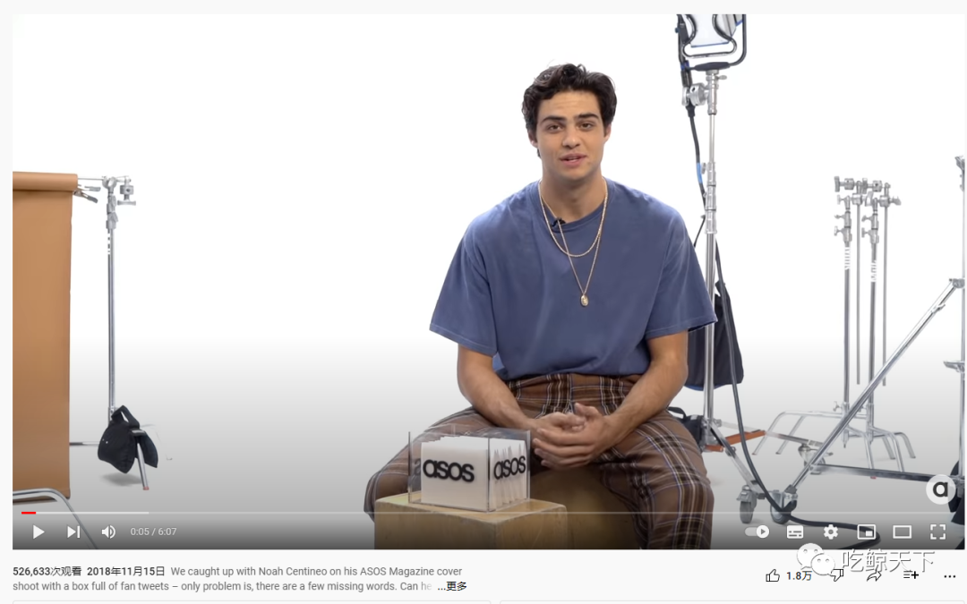 上累计9万粉丝,共发布了10条视频,主要以衣服试穿为视频内容,观看量都不高。截至目前,观看量最高的视频是男明星Noah Centineo拍摄ASOS服装的花絮并读粉丝信回答问题,很好的利用了明星自带的热度。