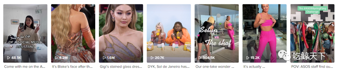 对比刚开TikTok时的内容,我们可以看到ASOS也在不断的尝试和调整,从最初的简单的模特身穿服饰的展示,只有几千的播放量到现在基本每个视频一经发布就有几万的播放量,ASOS始终在根据TIKTOK用户关注的趋势调整内容。