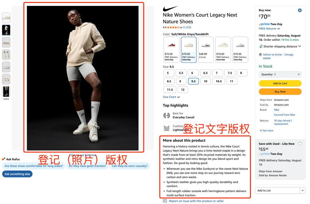 标题、描述:可以登记“文字作品”版权; 产品外观包装图案(包装纸,包装箱的表面图案):可以登记为“美术作品/2D艺术作品”; Listing的主图:可以登记为“照片/2D艺术作品”。