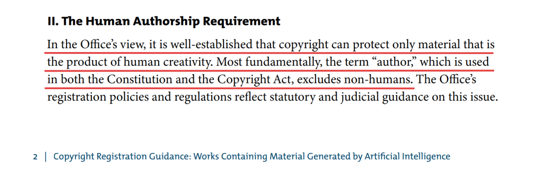 对于完全由AI 生成的作品,如用户输入的文本指令 “画一张孙悟空大战奥特曼的画”,全由 AI 自主决定生成内容,人类缺乏足够控制,不符合版权法对人类创作的要求。美国版权局将不批准版权登记。 对于由AI 和人类作者共同创作的作品,会先判断 “作品” 是否基本上是人类作者的作品,AI是否仅为辅助工具,具体依情况和 AI 工具的使用方式逐案确定 。