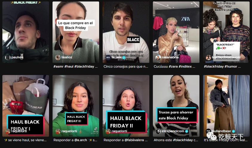 - 在TikTok上,#black friday标签播放量就有37亿,大多视频来源于博主的购物分享。