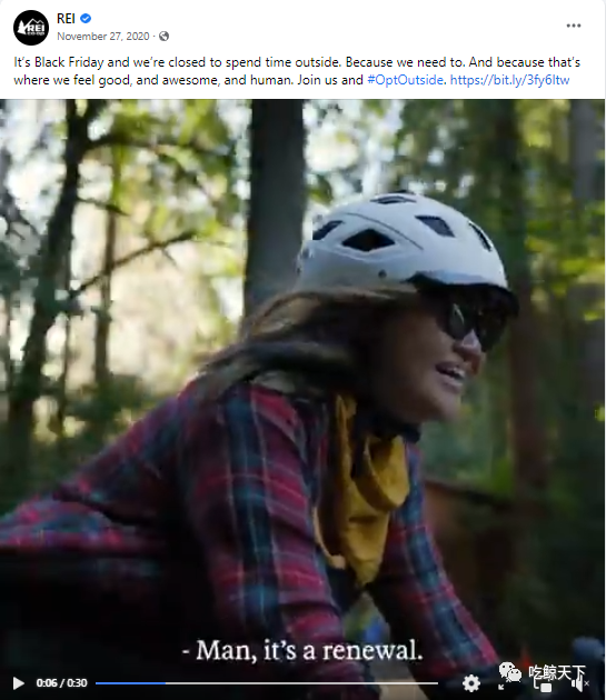 户外运动品牌 REI 在Instagram 发起的#OptOutside活动成为了教科书级别的黑五营销活动。