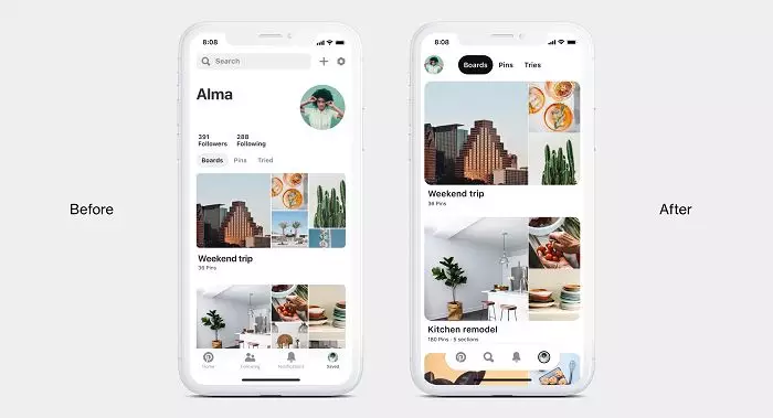 这次的调整,Pinterest没有大动干戈,而是根据调查用户使用习惯,将视觉元素进行调整~